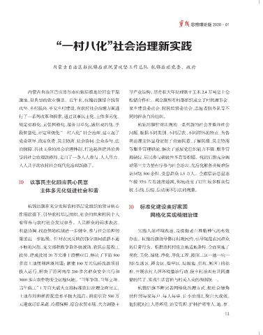 并以农牧民素质提升各类活动为基础,持续丰富新 网络,实现了问题第一时间反馈、困难第一时间解 “一村八化”社会治理新实践