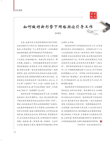 做好新形势下的网络舆论引导工作,必须增强 虎添翼,变成正能量的扩音器,成为党和政府宣传 势和重要法宝,在革命、建设和改革的不同历史时 是“你发文我发文大家都发文”,横批是“谁来落