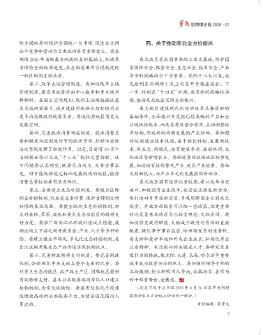 策,推动形成主体功能约束有效、国土开发有序的 单制度,消除歧视性、隐蔽性的区域市场壁垒,打 长江流域开展生态产品价值实现机制试点。 业家精神。东北振兴的关键是人才,要研究更具