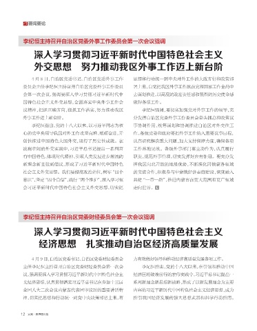4 月 8 日,自治区党委书记、自治区党委外事工作 思想和行动统一到中央对外工作的大政方针和决策部