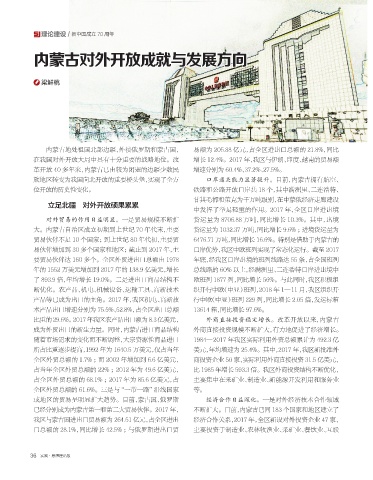 比重的 29.6%。2017 年我区农产品出口额为 8.3 亿美元, 外商直接投资稳定增长。改革开放以来,内蒙古