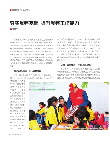 公司各级党组织坚持把学习贯彻习近平新时代中 紧抓“三基建设”不放松,以标准化方式建好基本组织、