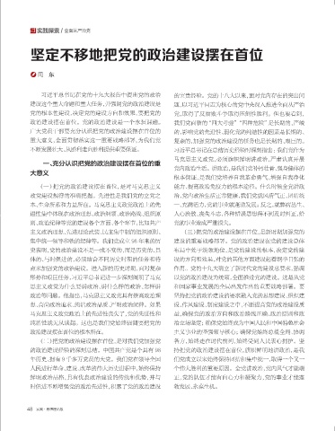 的政治建设经验的深刻总结。中国共产党是个具有 98 持把党的政治建设摆在首位,旗帜鲜明地讲政治,是我