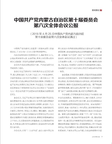 中国共产党内蒙古自治区第十届委员会第六次全 核心的党中央着眼决胜全面建成小康社会作出的重大