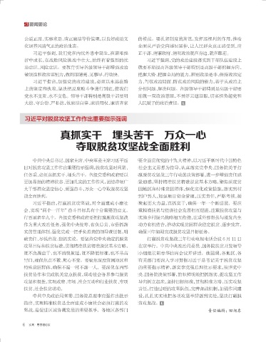 习近平指出,打赢脱贫攻坚战,对全面建成小康社 聚起更大力量,真抓实干,确保一年一个新进展。要注