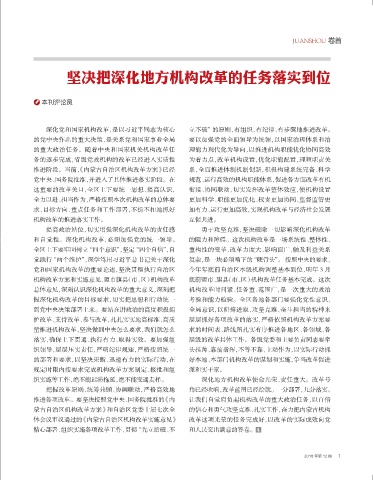 和自觉性。深化机构改革,必须加强党的统一领导。 的阻力和障碍。这次机构改革是一场系统性、整体性、