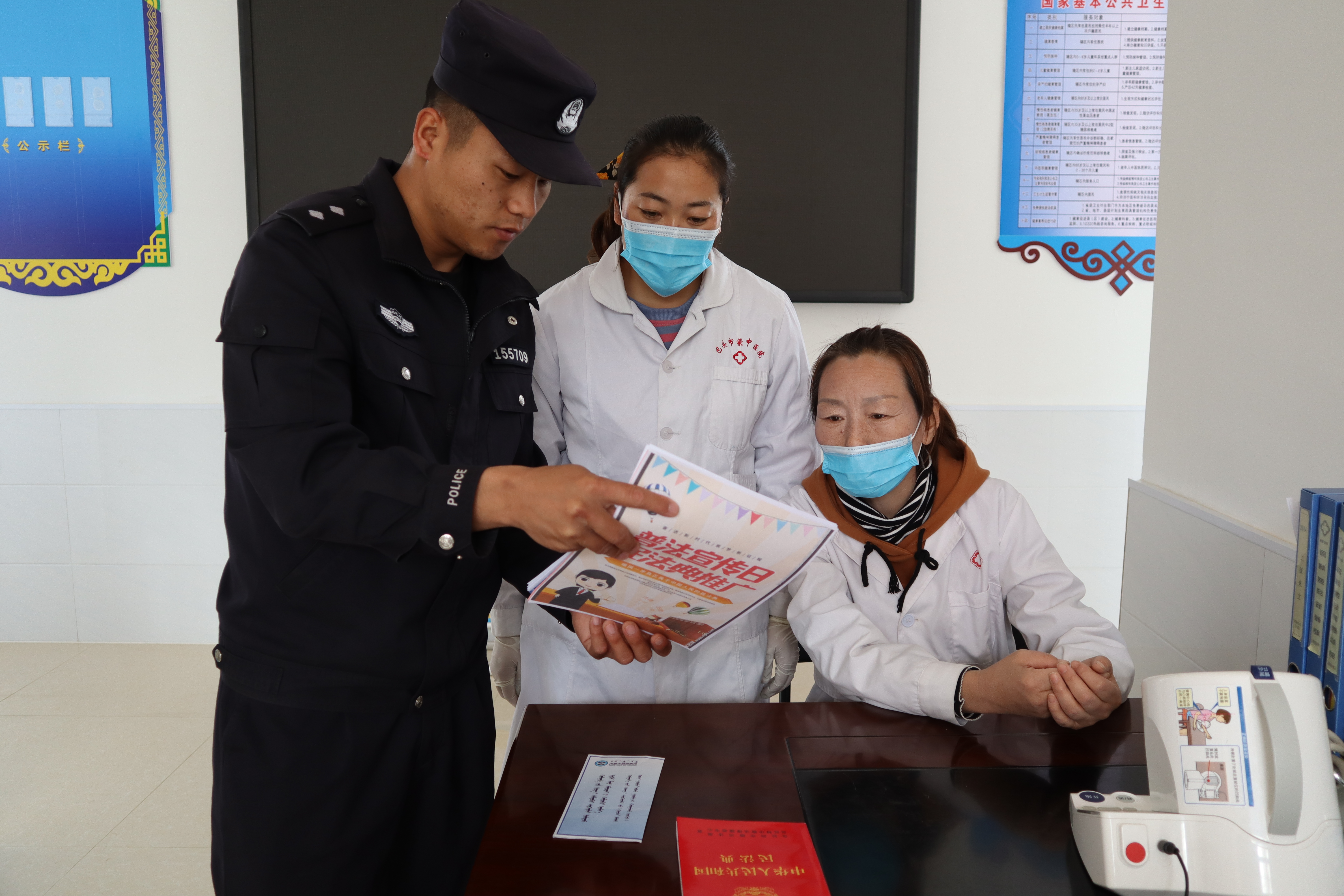 图为民警向驻地卫生部门工作人员宣讲国家安全相关法律法规