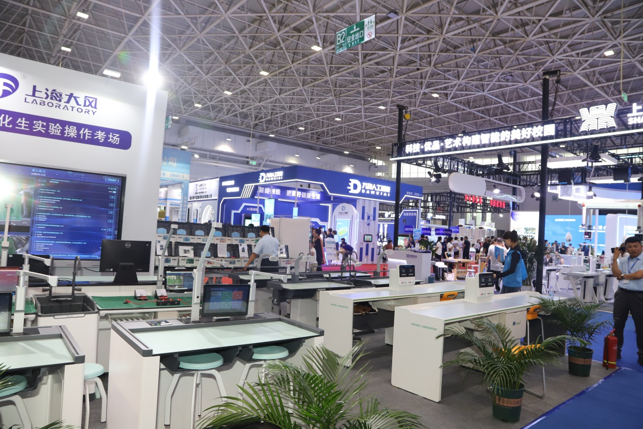 展会期间,教育装备技术核心展示区吸引了130余家企业的参展,展示面积超过1万平方米。该展区旨在构建一个区域性教育装备技术与教育教学融合的平台,为全区教育高质量发展提供坚实的硬件支持。展区全面展示了智慧教育软硬件产品,涵盖智慧备课系统、教学机器人、智能阅卷系统、虚拟仿真实验等AI应用,以及符合新课标要求的教学仪器设备。