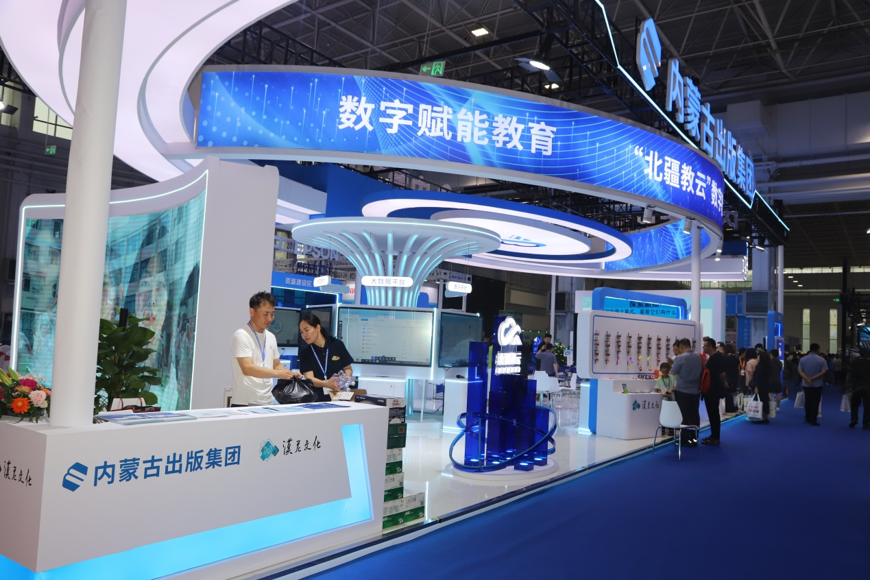 在内蒙古出版集团的展厅内,“北疆教云”的科技产品成为了众多参观者的焦点。这款平台以数字教材为核心,旨在为内蒙古自治区从小学到高中的各学段师生提供丰富的数字教育资源和先进的教学工具。它不仅助力教学流程和教学模式的创新,而且有力地推动了教育资源的均衡与优质发展,加速了优质教育资源的覆盖面扩大,显著提升了乡村及教育薄弱地区的教育质量。这款平台已成为师生整体教学过程中不可或缺的工具,深入融入了教育教学的各个环节。