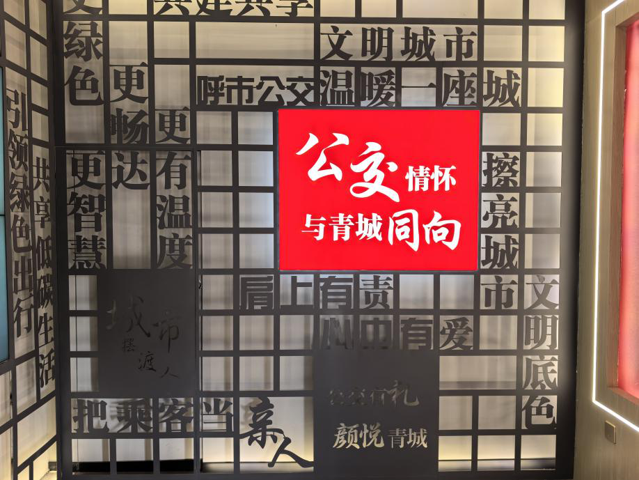 呼和浩特市青城公交社内展示墙。(郭慧文 摄)