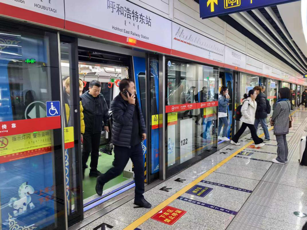 呼和浩特市民乘坐地铁出行。(郭慧文 摄)
