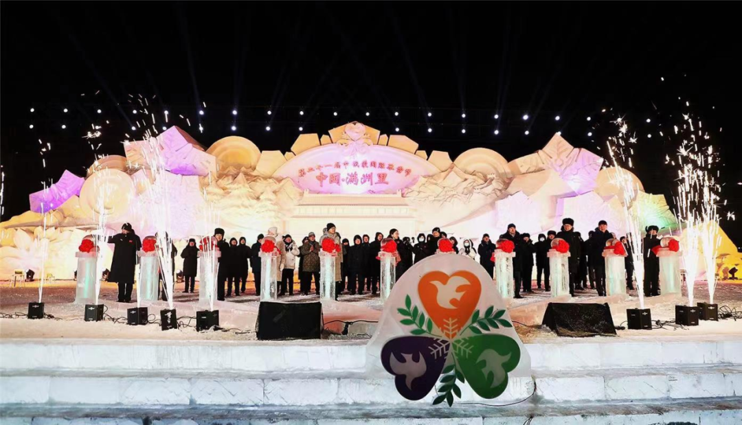 中国·满洲里第二十一届中俄蒙国际冰雪节启动仪式。(图片来源:“十四冬”官方网站)