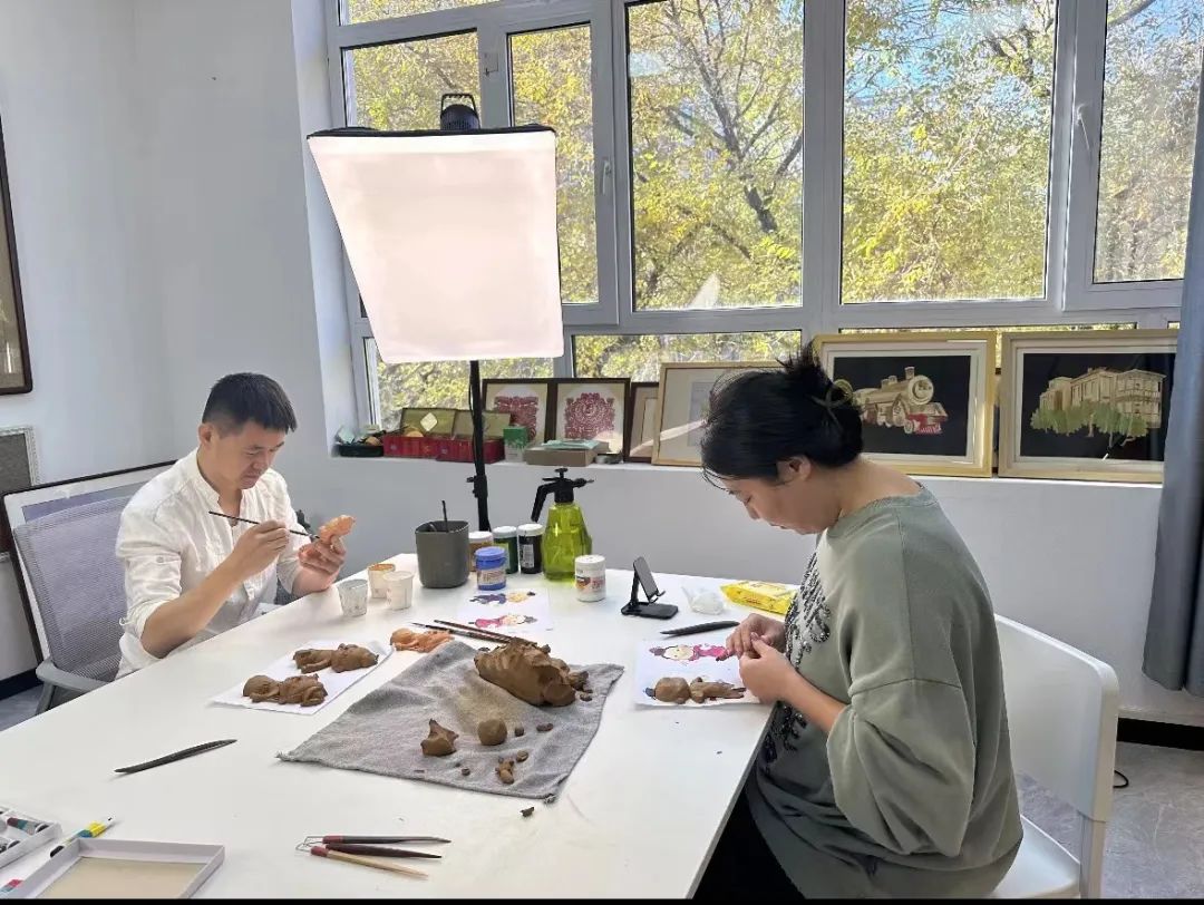 走进扎兰屯市泥师傅雕塑工作室,扎兰屯市级非遗泥塑传承人孙星和他的学员们正在忙着制作新一批的“十四冬”泥塑浮雕。
