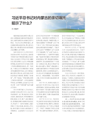 象” ;第二句话是,“希望内蒙古各族 力度,令全区干部群众深感振奋、倍 意高远、一脉相承,内在地包含着对 其二,习近平总书记对内蒙 区“守望相助”“团结奋斗”“发扬蒙 部群众以巨大鼓舞和有力鞭策,为内