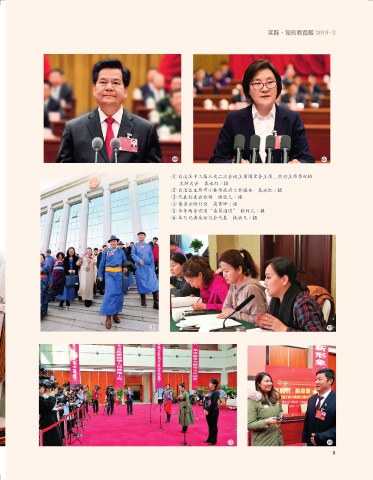 实践·党的教育版 2019·2 ① ② ① 自治区十三届人大二次会议主席团常务主席、执行主席李纪恒 主持大会 袁永红 / 摄 ② 自治区主席布小林作政府工作报告 袁永红 / 摄 ③ 代表们走出会场 铁牧儿 / 摄 ④ 委员分组讨论 高雪峰 / 摄 ⑤ 今年两会首设“委员通道” 铁牧儿 / 摄 ⑥ 本刊记者采访与会代表 铁牧儿 / 摄 ③ ④ ⑤ ⑥ 9