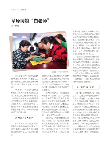 们可能不知道是谁,但说起教刺绣 做衣服时,白晶莹总在一旁打下 刺绣产业的主要推动者。