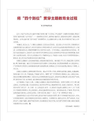 导到位。总书记提出抓“四个到位”的明确要求,为主题教育深入开展、务求实效指明了着力点和