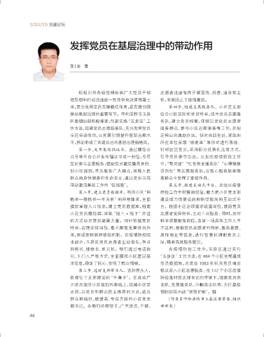 作方法,组建党员志愿服务队,充分发挥党员 服务群众、参与小区治理事务等工作,并制