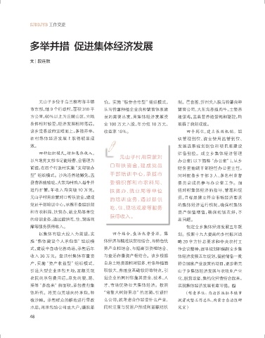 进行扩繁,年收入均突破 10 万元。 扶贫办、就业局等单位 强对村集体经济的指导、管理和规