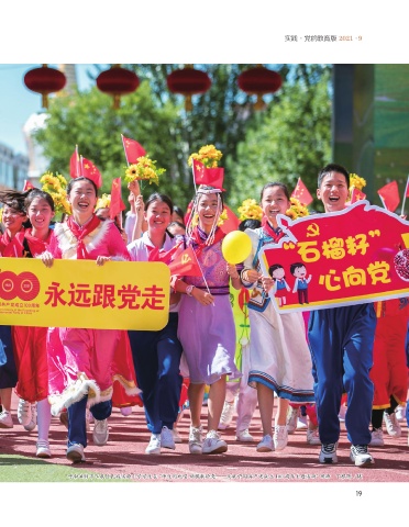 实践·党的教育版 2021·9 呼和浩特市玉泉区民族实验小学学生在“师生同欢唱 颂歌献给党——庆祝中国共产党成立 100 周年主题活动”现场 丁根厚 / 摄 19