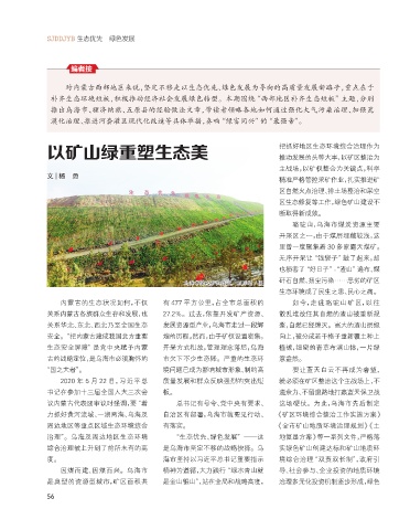 综合治理被上升到了前所未有的高 是乌海市坚定不移的战略抉择。乌 实绿色矿山创建达标和矿山地质环