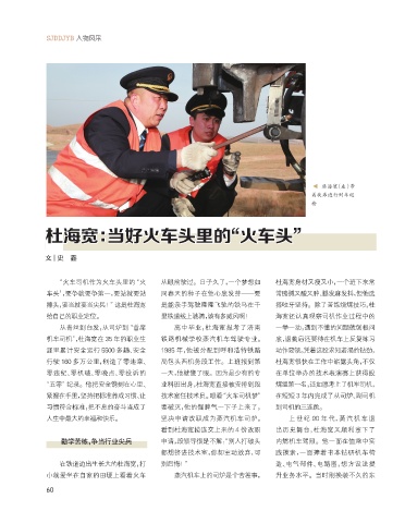 排头,要当就要当尖兵!”这是杜海宽                  是能亲手驾驶隆隆飞驰的铁马在千                    择咬牙坚持。除了苦练烧煤技巧,杜