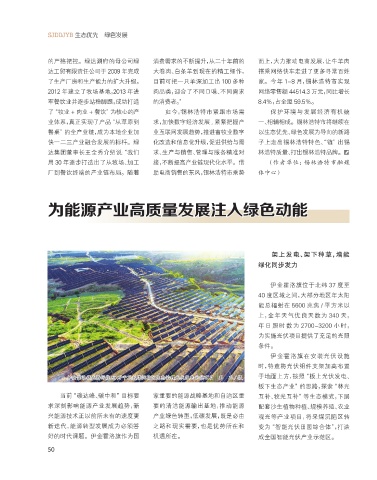 架上发电、架下种草,增能 了一二三产的融合发展,也为绿能 伊金霍洛旗现代能源经济最后一块 在几十公里外的圣圆煤化工基