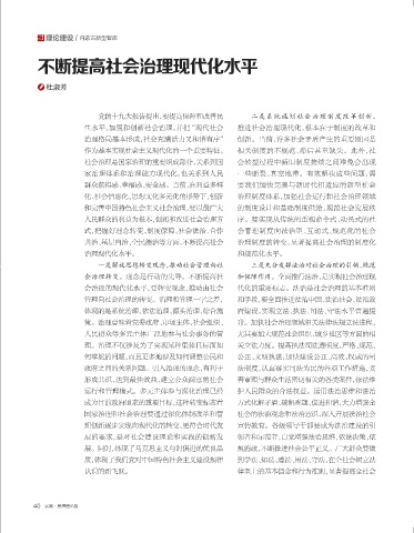 共治、基层自治、全民德治等方面,不断提高社会 治理制度的转变,显著提高社会治理的制度化