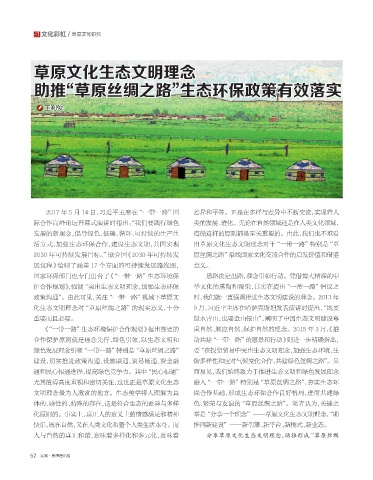 政策沟通”。由此可见,关注“一带一路”视域下草原文 时,我们就一直强调推进生态文明建设的理念。2013 年