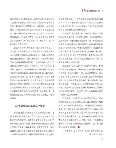 基层支部书记和工会主席要与企业党委、工会领导进 处不在,哪怕是两个员工在谈私事,也离不开思想的