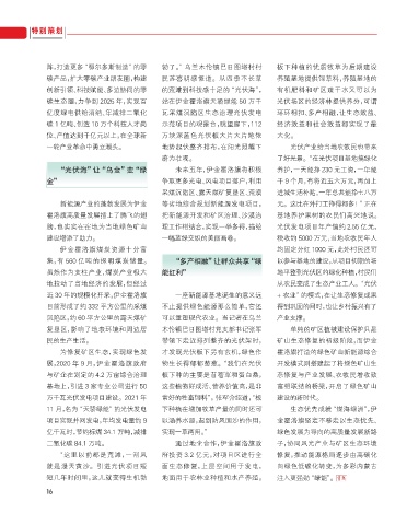 11 月,名为“天骄绿能”的光伏发电 下种植在增加牧草产量的同时还可 生态优先成就“煤海绿洲”,伊
