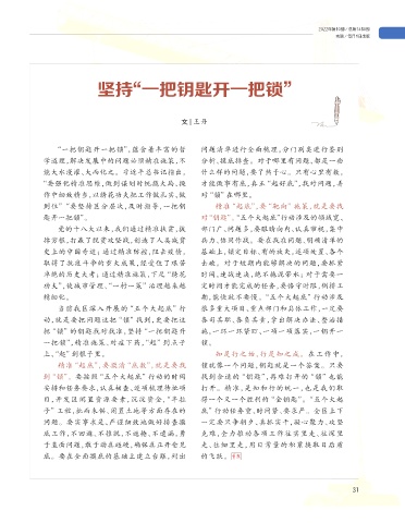 把“锁”的钥匙找对找准,坚持“一把钥匙开 施,一环一环紧盯、一项一项落实,一钥开一