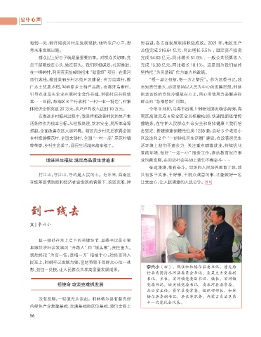 每到一处,都详细询问村庄发展现状,倾听农户心声,思 厉奋进,各方面发展取得积极成效。2021 年,地区生产