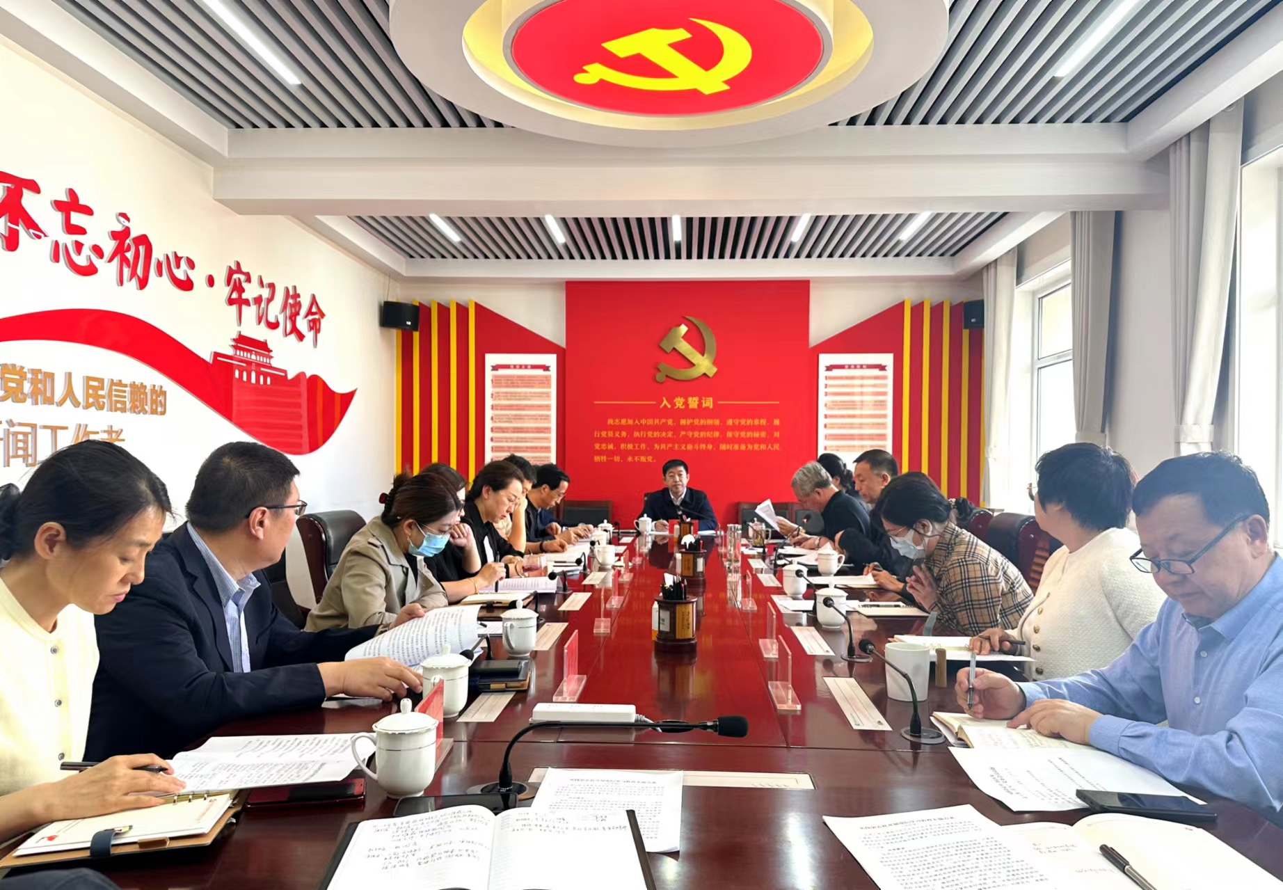 4月15日,实践杂志社召开2024年第11次党委(扩大)会议,传达中央及自治区党委关于开展党纪学习教育的有关精神,安排部署杂志社党纪学习教育工作。社党委书记、社长李洪才主持会议,社党委班子成员、各部门负责人参加会议。