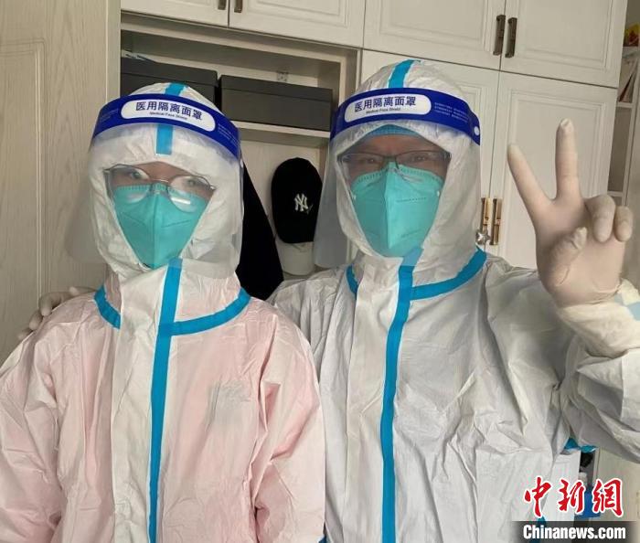 图为齐宇(右)和女儿一起参与抗疫。 齐宇供图。