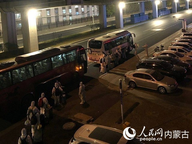 高校学生有序登车,前往隔离点。内蒙古教育厅供图
