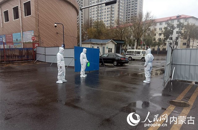 呼和浩特市某小区医护人员正在进行核酸检测。人民网 刘艺琳摄