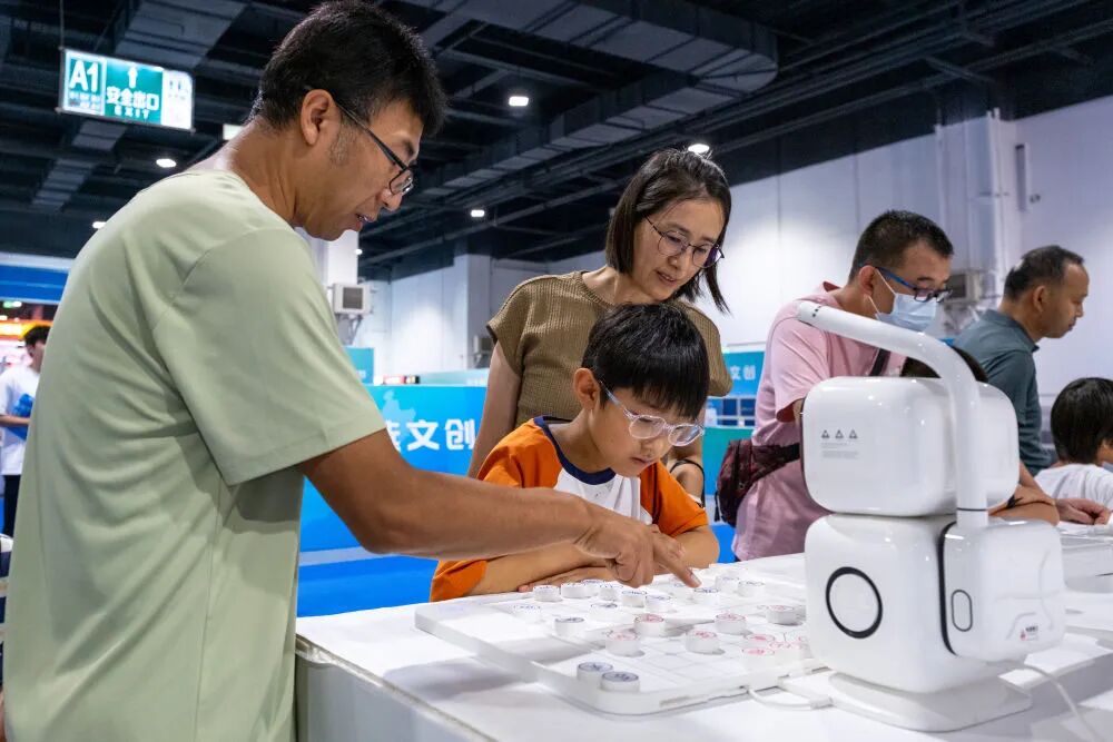 在2025北疆书展现场,参会者与AI下棋机器人对弈。图片来源:新华社记者 马金瑞 摄