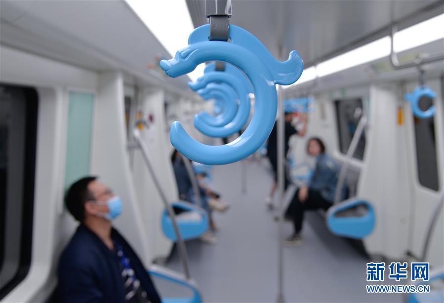 呼和浩特地铁2号线列车车厢拉环为“中华第一龙”造型(5月20日摄)。