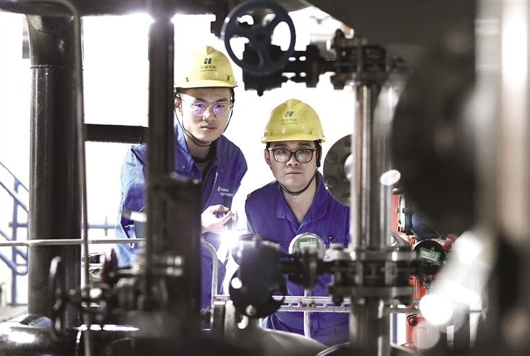 12月15日,呼和浩特热电厂的工作人员正在查看供热设备运行情况。为了保证冬季正常供热,呼和浩特热电厂通过加强供热参数调整、积极储煤、加大巡检力度等措施,消除隐患保证设备正常运行,确保用户温暖过冬。(摄影/北方新报正北方网首席记者 牛天甲)