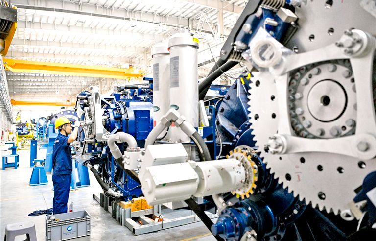 近日,在包头市明阳新能源装备制造产业园,工作人员正在组装风力发电机。该产业园是明阳集团打造的首个“灯塔工厂”,通过柔性脉动生产线,整机装配耗时从3天缩短至4个小时,具备年产1500台套风电整机的能力。包头市依托明阳集团等“链主企业”的磁极效应,构建风电装备全产业链格局。
