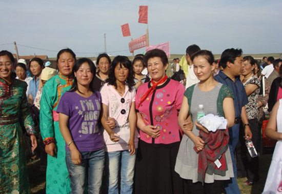 德德玛(前排右二)和牧民在一起。杨知然 摄
