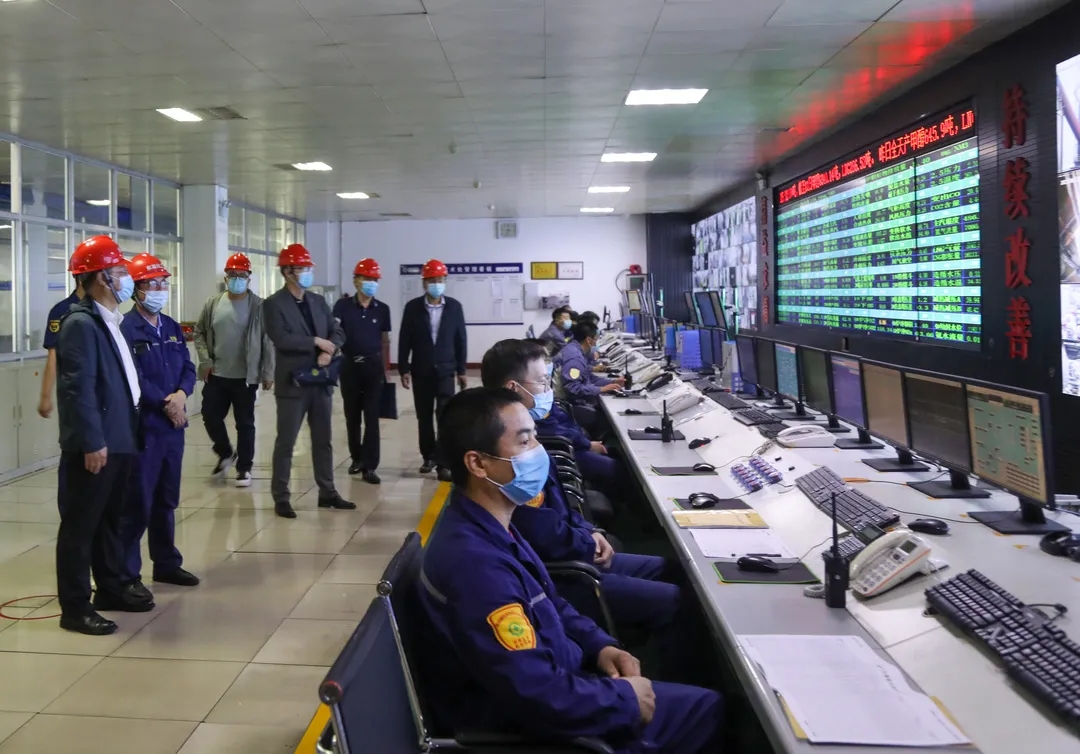 赵建波(左一)督查指导企业安全生产工作。白长皓 摄