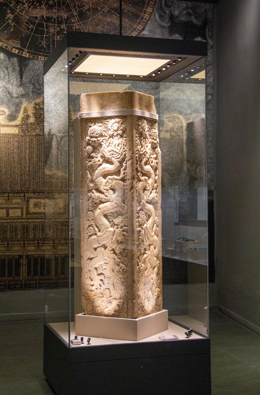 在锡林郭勒盟正蓝旗的元上都遗址博物馆里,展示着“镇馆之宝”——它就是1996年出土于大安阁遗址西南角的国家一级文物:汉白玉雕龙角柱。