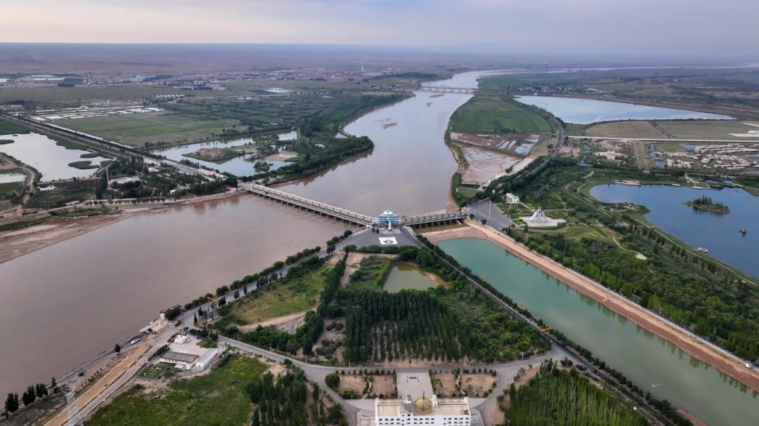 而要说到河套平原的水利枢纽,就不得不提素有“万里黄河第一闸”之称的三盛公水利枢纽。它是亚洲最大、黄河上唯一以灌溉为主的“一首制”(即一个口子取水)引水大型平原闸坝工程。这座宏伟工程宛如历史巨人般,终结了黄河内蒙古段无坝引水的历史。雄伟闸坝巍然立于黄河之上,将黄河水一分为二,一部分流向黄河主干道,奔腾不息;另一部分则被引入河套平原的万顷农田,润泽河套大地,浇灌出“塞外粮仓”。