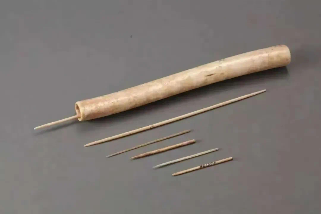 阿善遗址出土的骨针和针筒。来源:包头市委宣传部