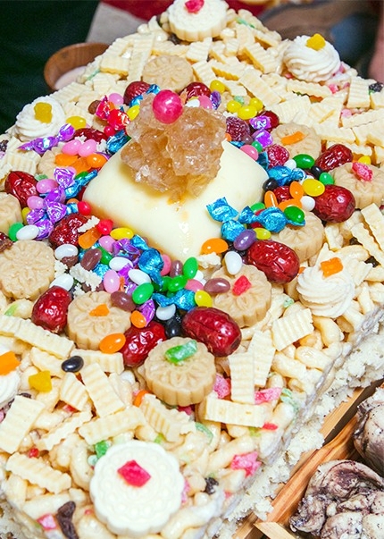 在红食的殿堂里,烤全羊是必须隆重介绍的美食。它不仅是游牧民族待客的最高礼仪,用以表达对客人的格外尊重,同时也象征着团圆、丰收和吉祥,有着丰富的文化寓意。精选羯羊(被阉割后的公羊),掏空内脏后,用芹菜、胡萝卜、洋葱等混匀后涂抹于全羊内部,用果木炭火缓慢烤制数小时,其间不断刷上饴糖稀释液。羊皮呈现诱人的琥珀色,外酥里嫩,香气飘散数里。上桌时的仪式比味道更动人,全羊昂首跪卧在木盘里,嘴里衔着翠绿的香菜,祝颂人端着银碗吟唱“全羊赞”,从羊头到羊尾,每一部分都有吉祥寓意。元代的“诈马宴”上,烤全羊是皇室宗亲的最爱,如今它成了草原旅游的“打卡项”,但那份“敬天惜物”的初心没变,羊的每一部分都会被分食,绝不浪费。