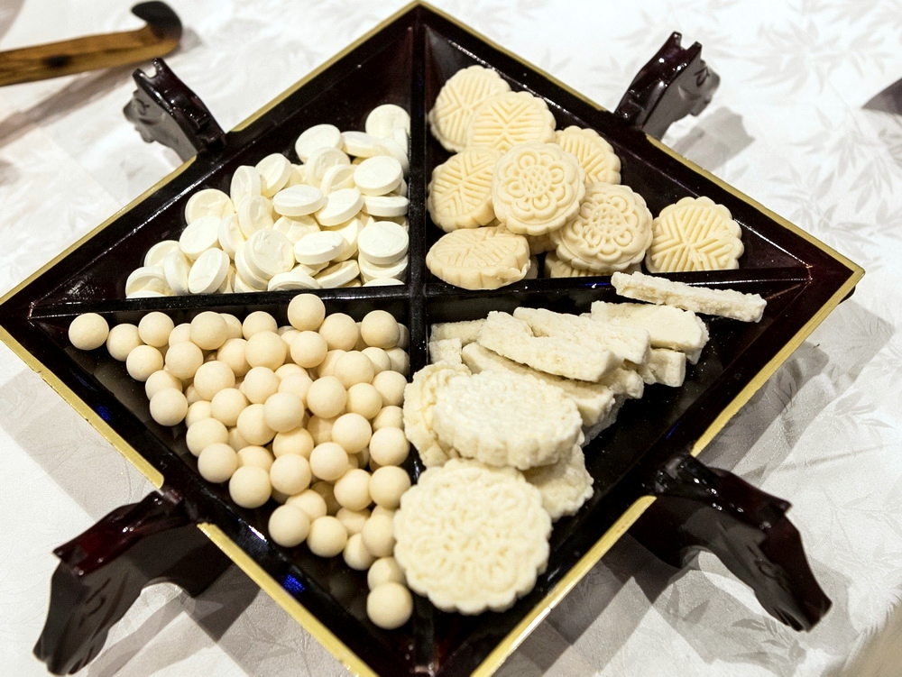 奶皮子如同草原上的“黄金薄膜”,慢火煮奶过程中揭取的表层油脂凝结物,每公斤牛奶只能出一两,被称为“百食之长”;奶豆腐则是将酸奶浓缩去水分后形成的块状物,便于携带和长期保存,能在行囊里躺上数月不坏;而稀奶油主要通过静置或离心分离全脂奶,收集上浮脂肪层制成;黄油则通过持续搅打发酵奶分离出不同脂肪成分制成。这些白食不仅美味,还富含营养,体现了游牧民族“药食同源”的生活智慧。