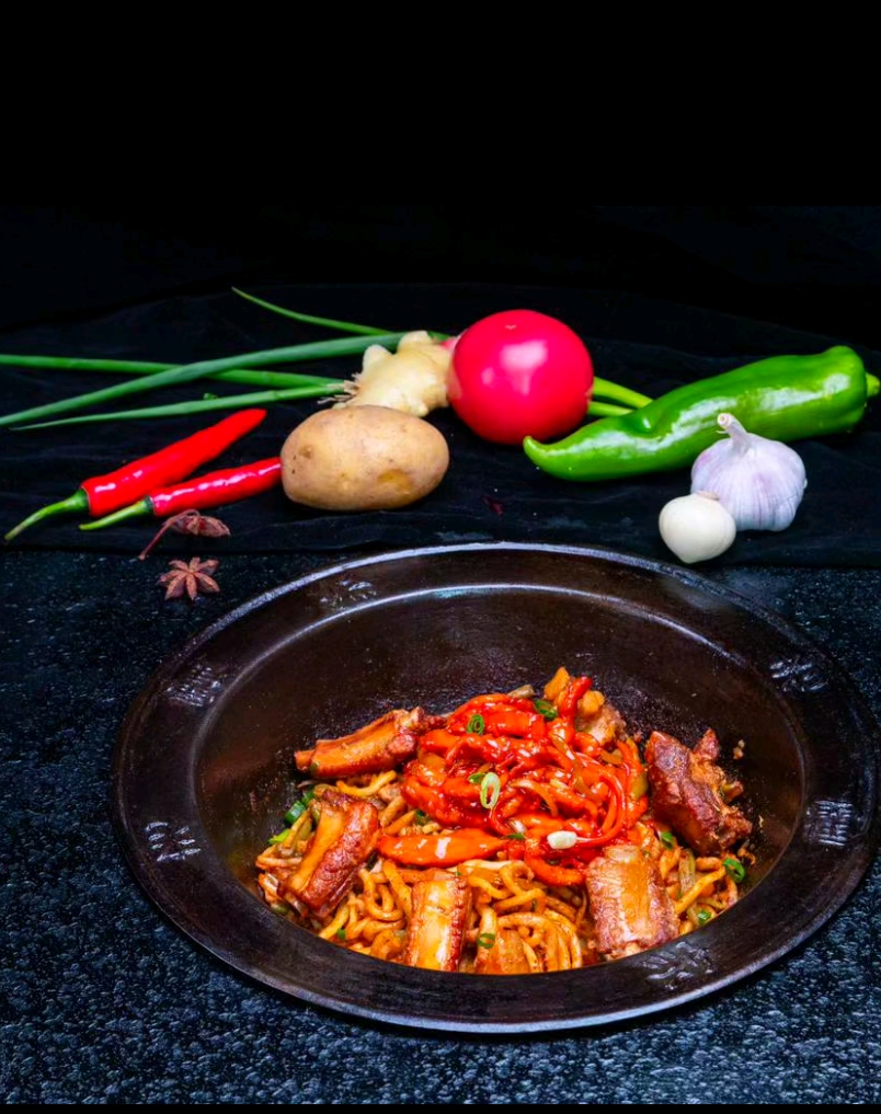 老霍家排骨鱼香肉丝焖面。
