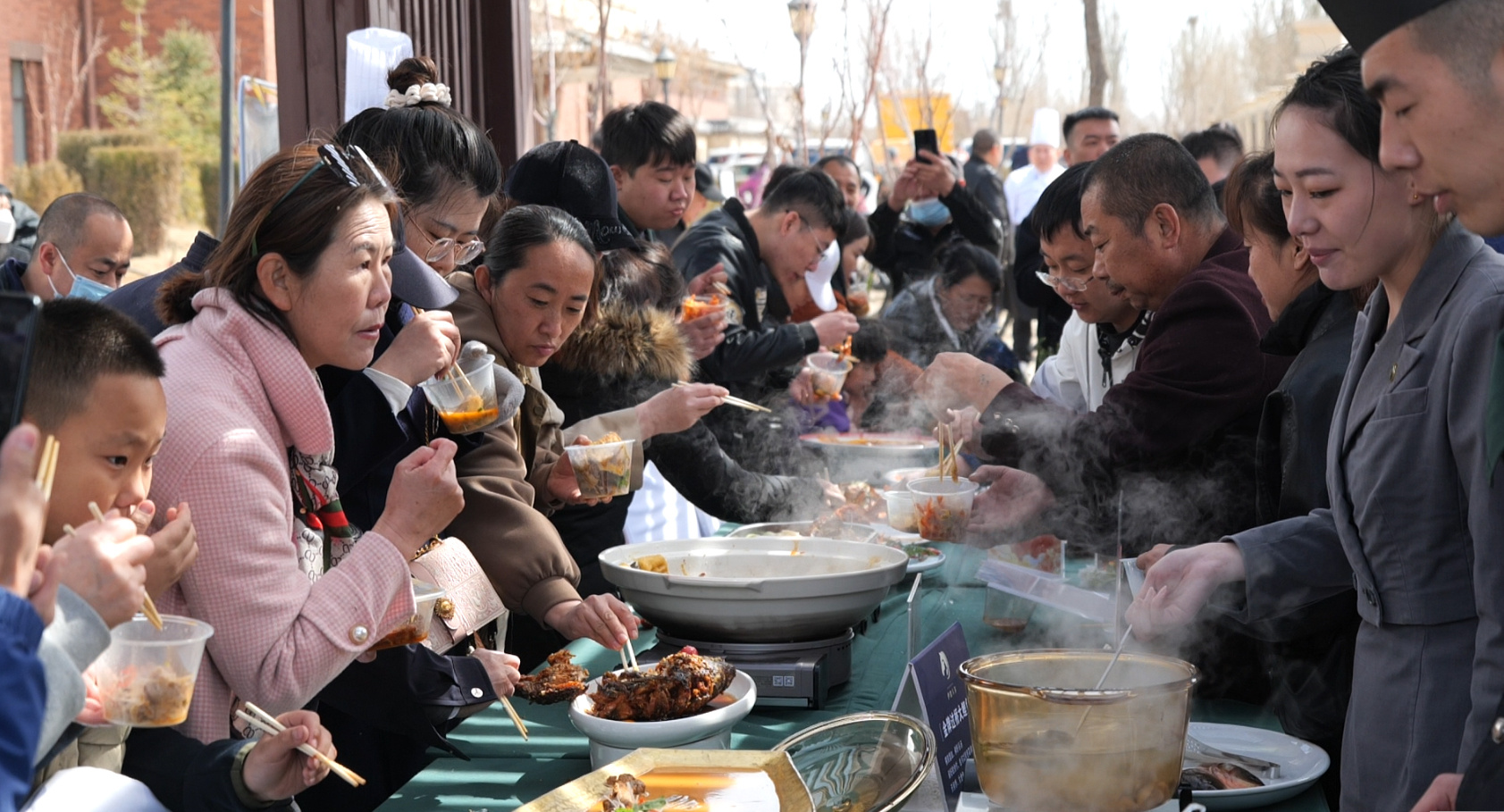 市民品尝开河鱼宴。(来源:包头稀土高新区新闻中心)
